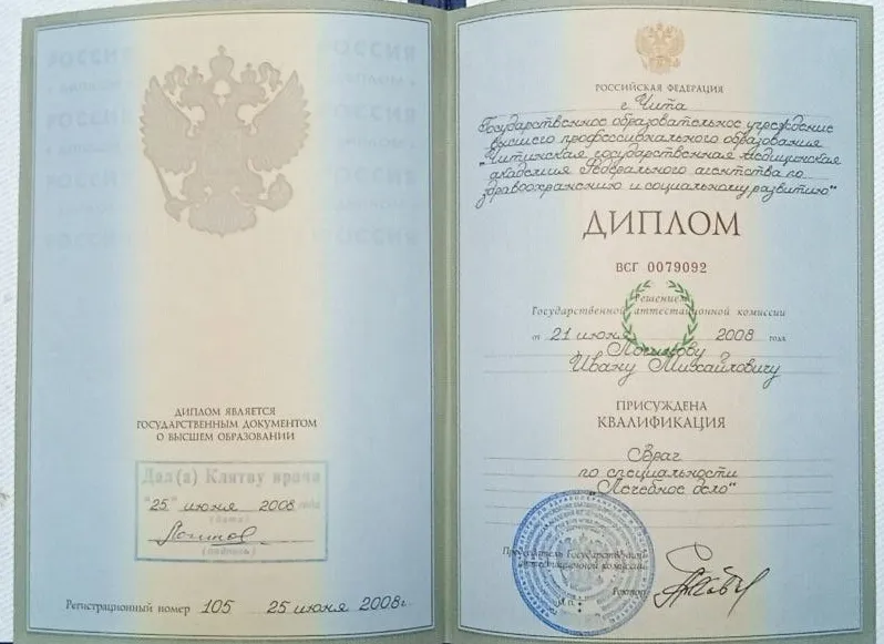 • 2008 — ФГБОУ ВО "Читинская государственная медицинская академия" (Лечебное дело);